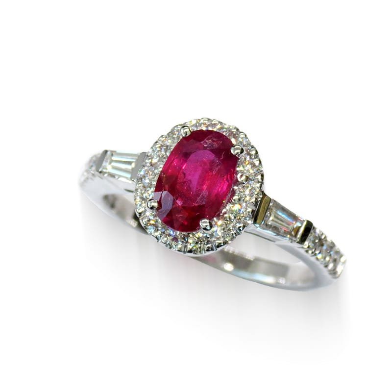 Bague Or Blanc 20,77K — Rubis Naturel Non Chauffé 1,53 ct (Ovale) & Diamants 0,53 ct