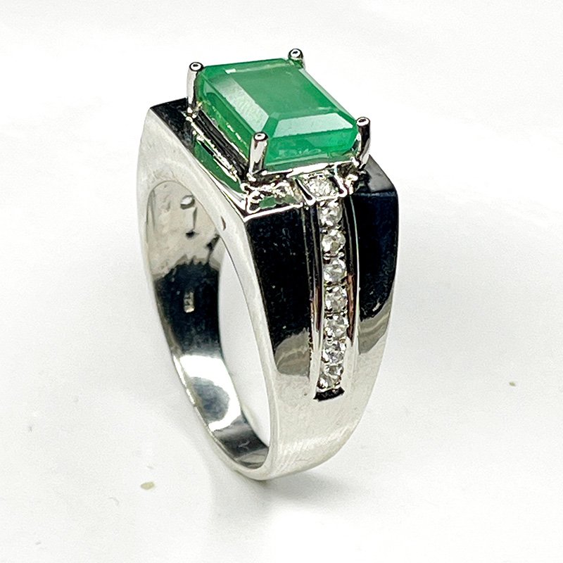 Découvrez notre Modèle Majestic Vert, une Bague argent 925 avec émeraude unique qui marie l’élégance intemporelle de l’argent 925 avec l’éclat naturel d’une émeraude rectangulaire taillée à degrés.