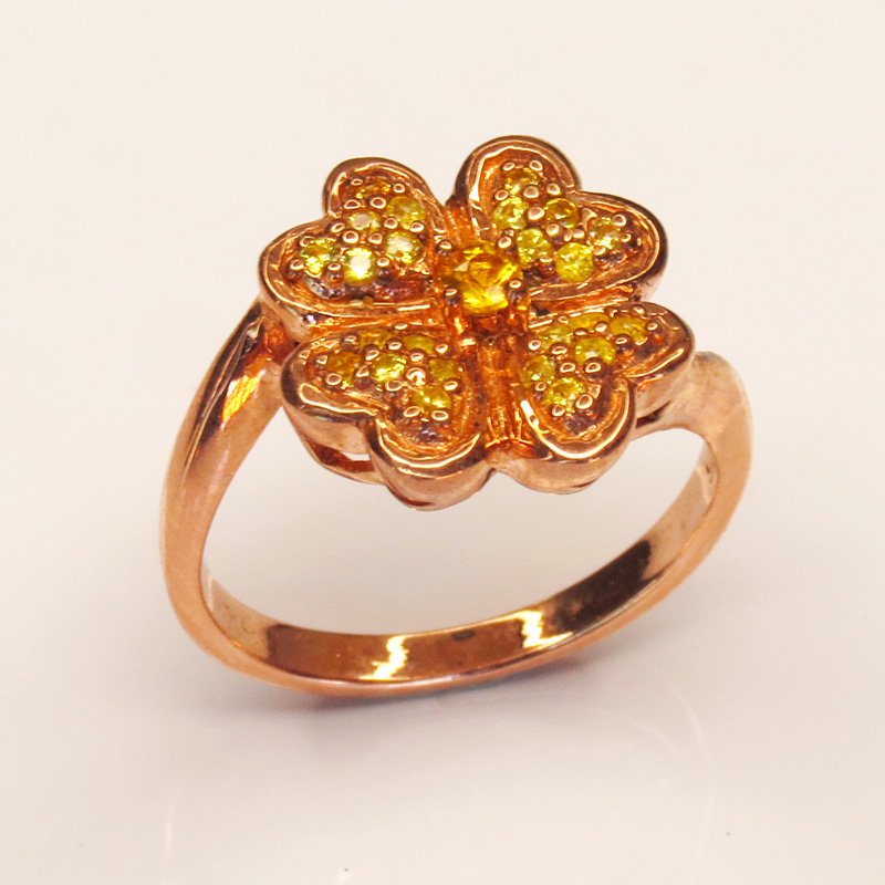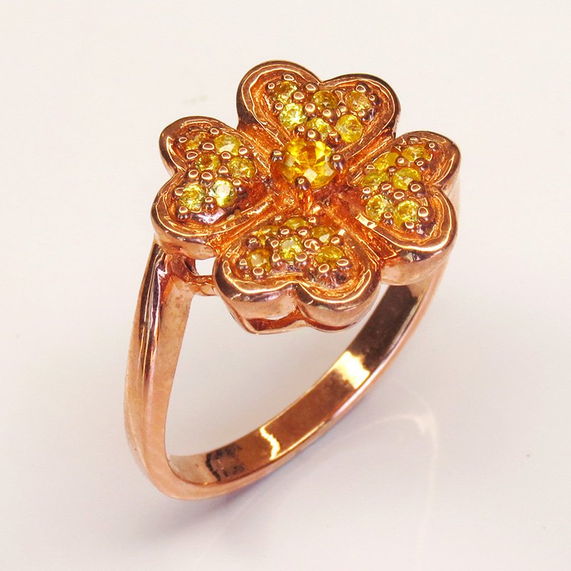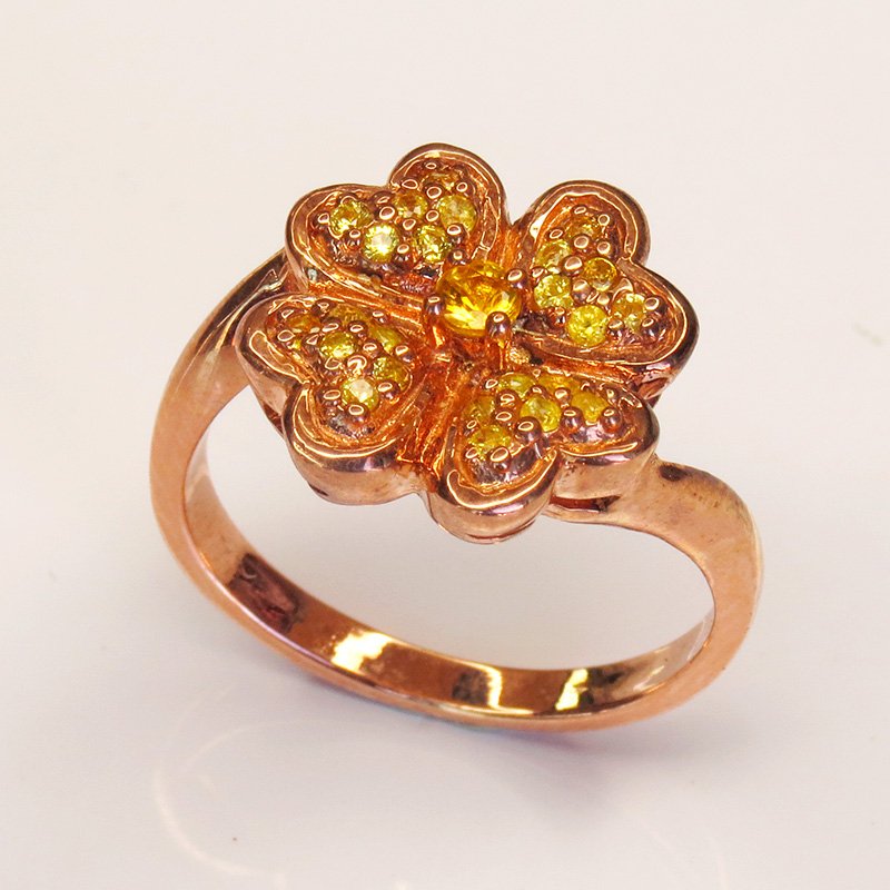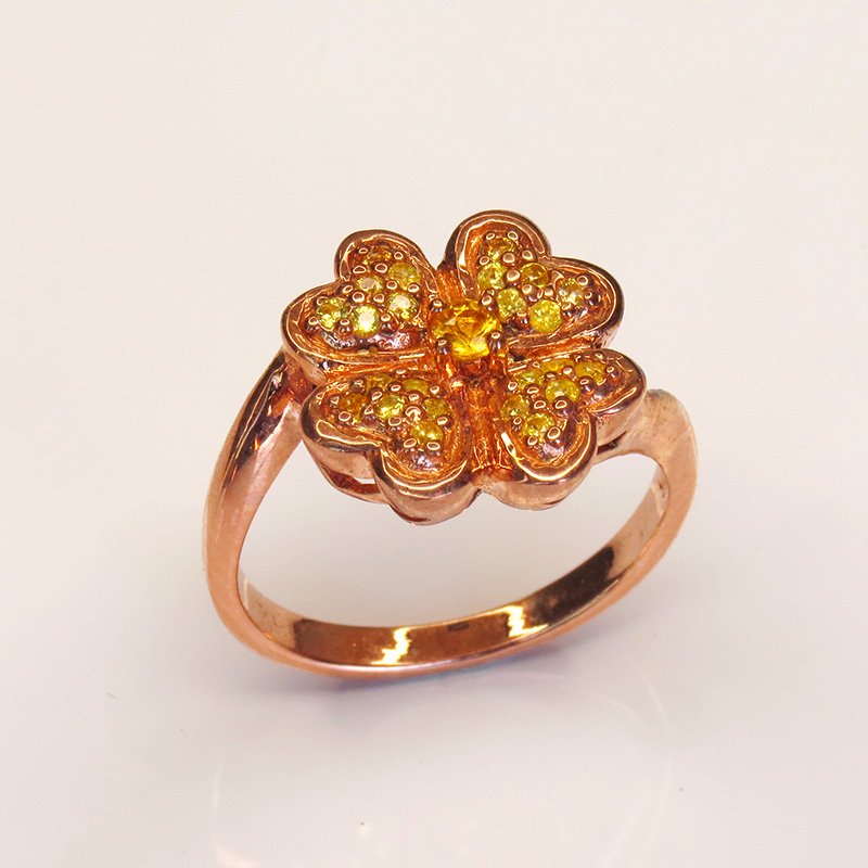 un saphir jaune au centre, entouré de zircons qui captent la lumière comme des pétales scintillants.