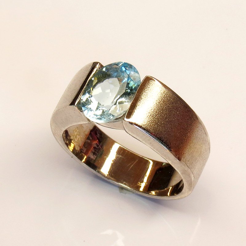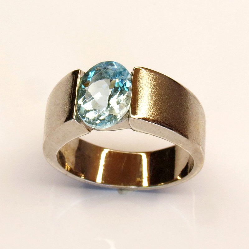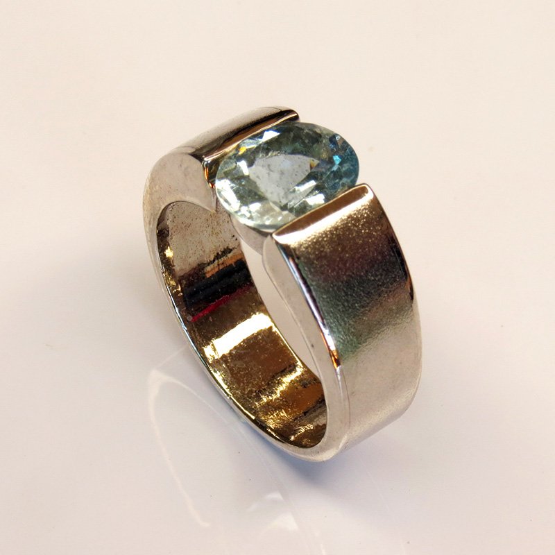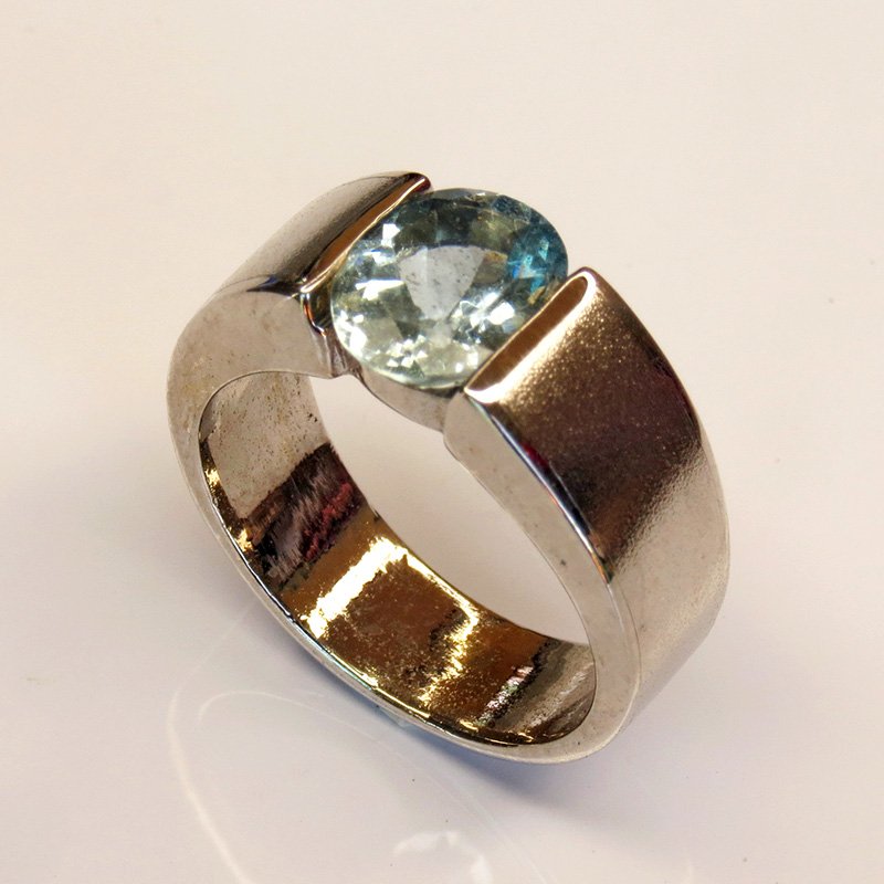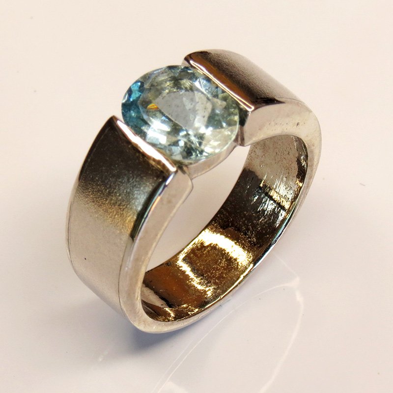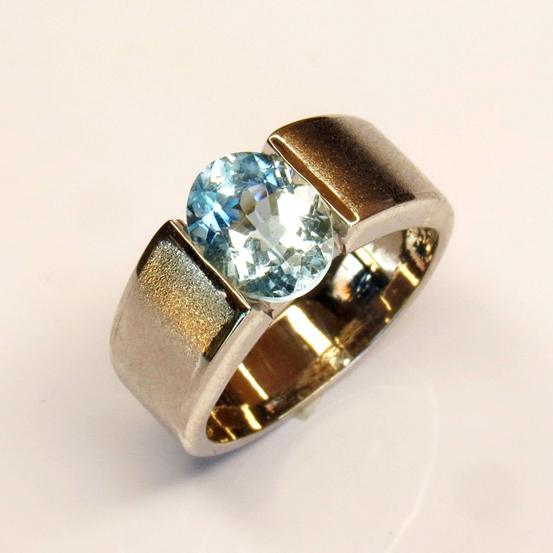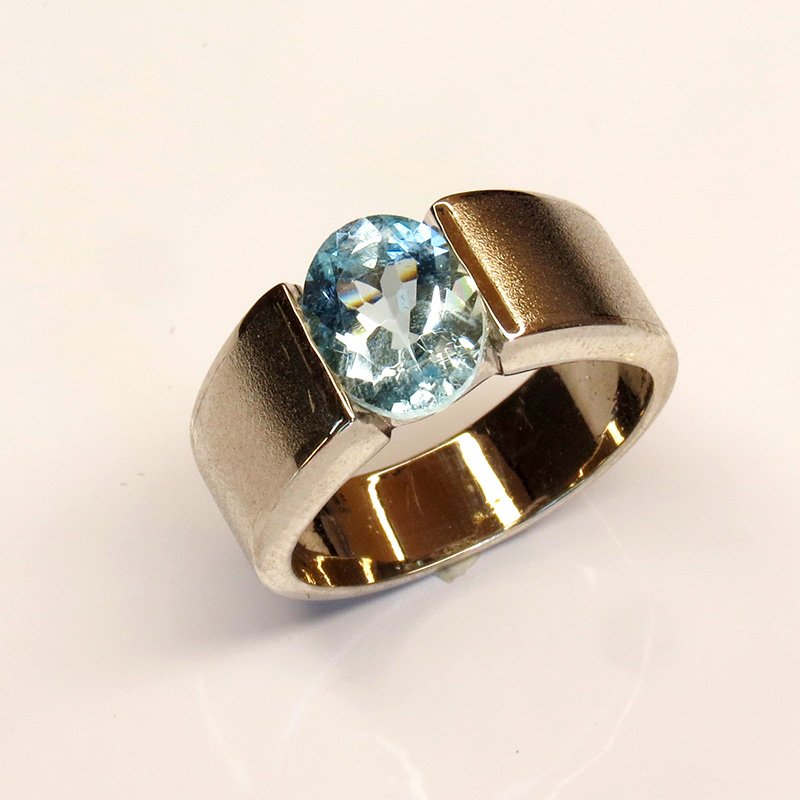 aigue-marine naturelle au bleu clair lumineux, sertie sur une monture épurée en