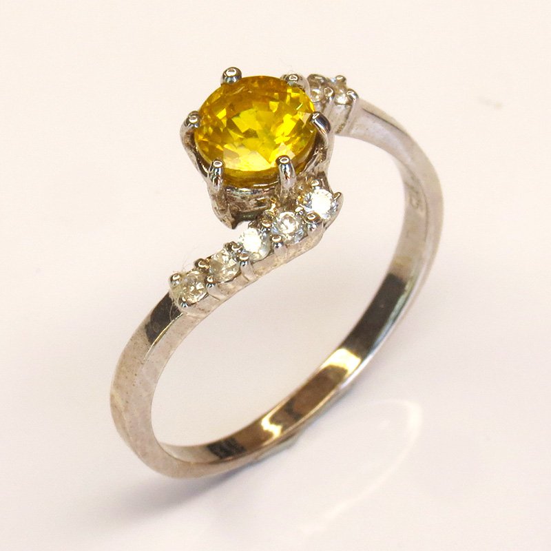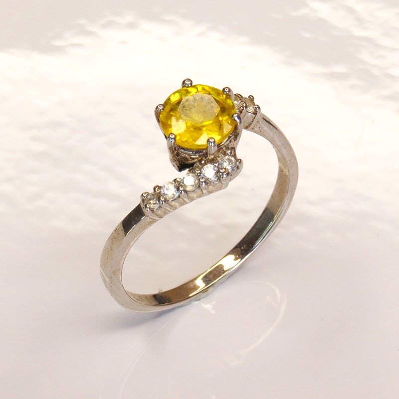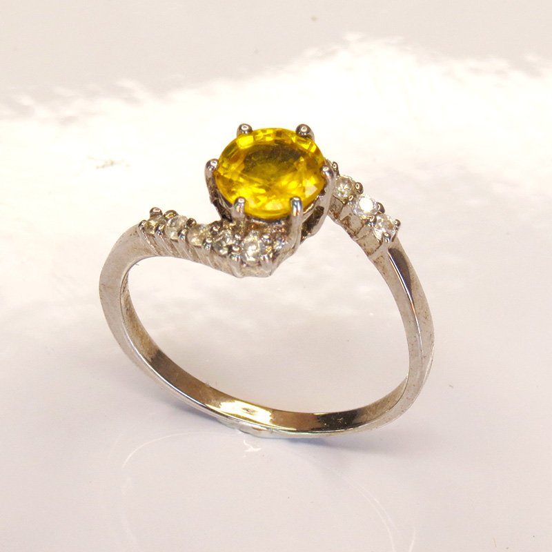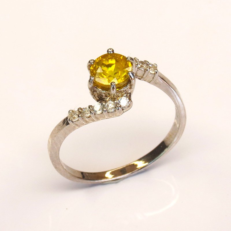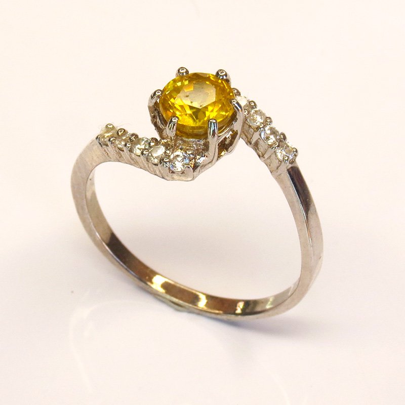 saphir jaune taille ronde, accompagné de zircons blancs pour un effet éclatant.