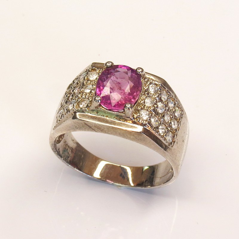- Pierre centrale : Saphir rose-violet (taille ovale)