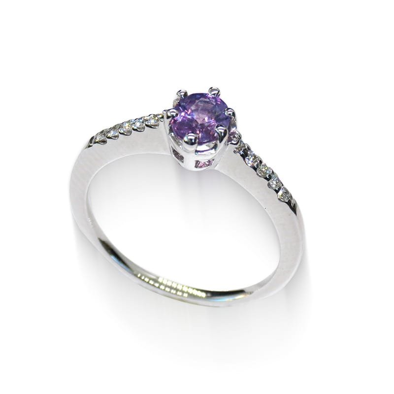Bague Or Blanc 18K — Saphir Violet Naturel 0,62 ct (Ovale) & Diamants Naturels 0,09 ct
